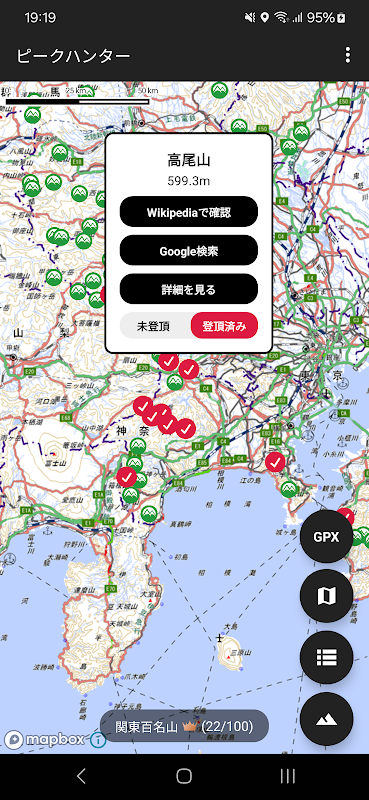 日本の山の登山記録 - ピークハンター 2.5.0