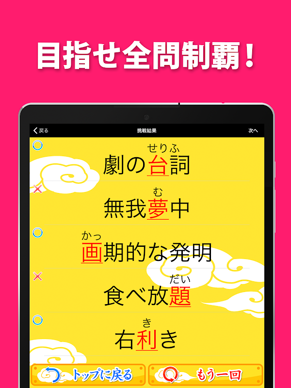 書けないと恥ずかしい脳トレ漢字クイズ(手書き漢字ゲーム)