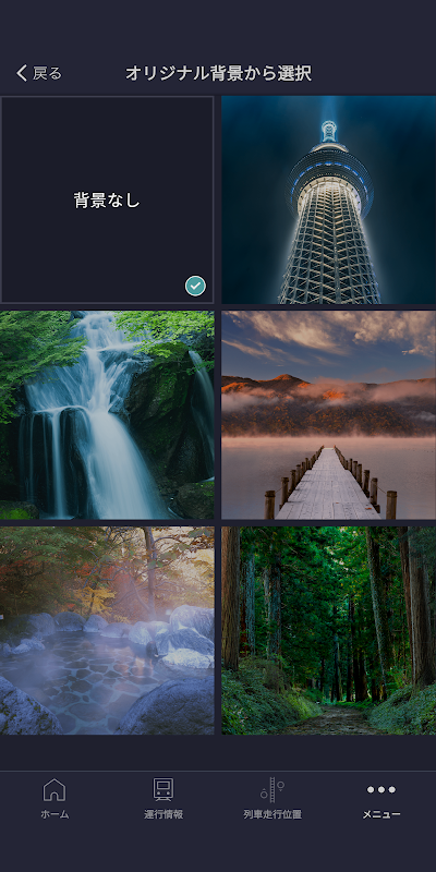 اطلاعاتی را در مورد قطارهایی که از خط توبو از پیش ثبت نام شده "ایستگاه های پرکاربرد" حرکت می کنند را نمایش می دهد. می توانید تصویر پس زمینه را روی یک تصویر از پیش تعیین شده یا تصویر دلخواه خود که در دستگاهتان ذخیره شده است تنظیم کنید.