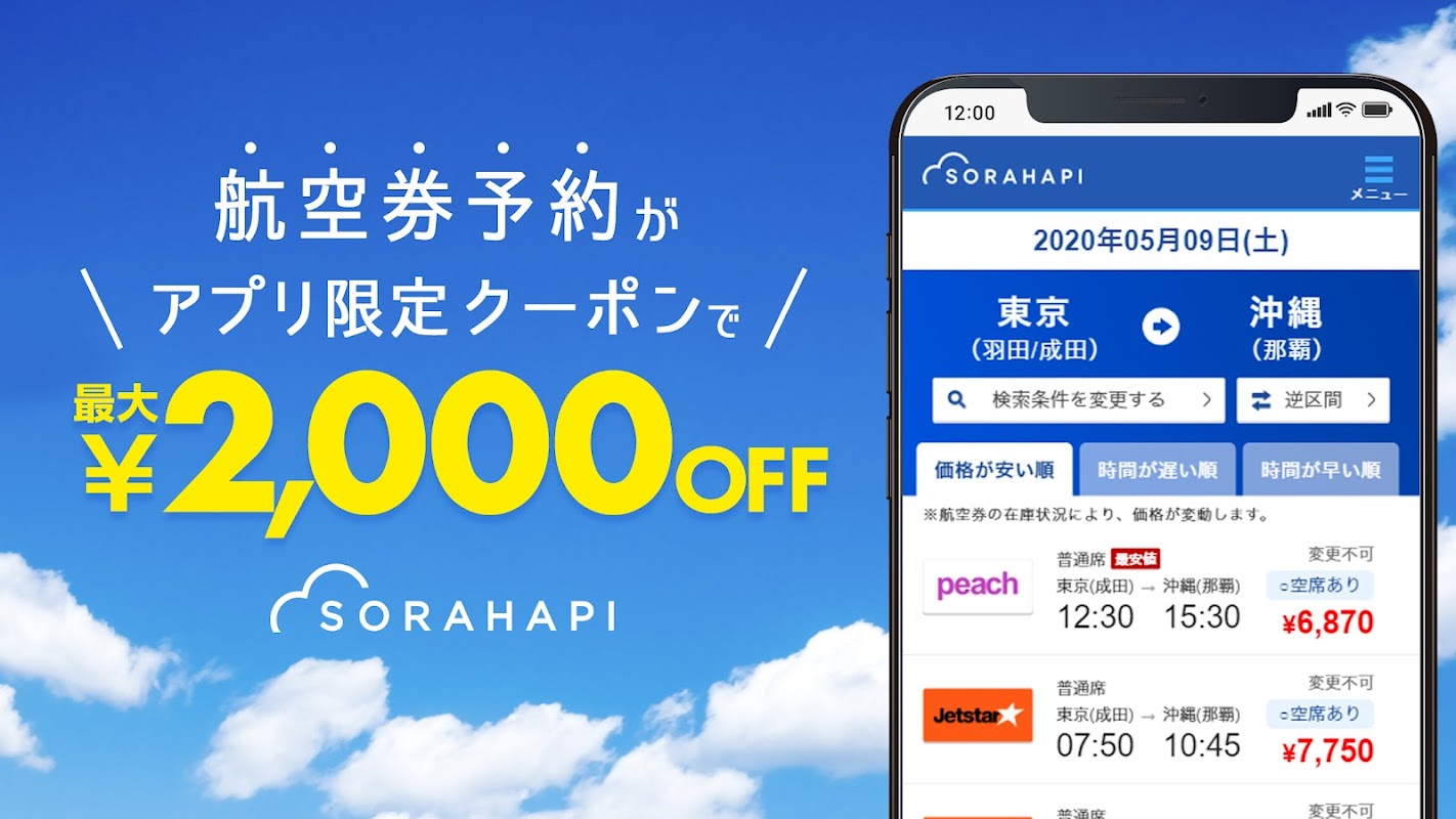 格安航空券 ソラハピ 飛行機・航空券の予約をお得にアプリで