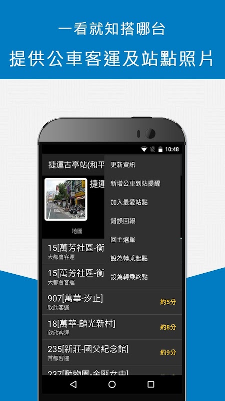 بیش از 2000 مسیر اتوبوس و 40000 ایستگاه اتوبوس در سراسر تایوان، از جمله عکسهای سایت دقیق و عکسهای خودرو را ارائه میدهد تا دیگر نگران انتظار توقف اشتباه اتوبوس هنگام سوار شدن به اتوبوس نباشید.