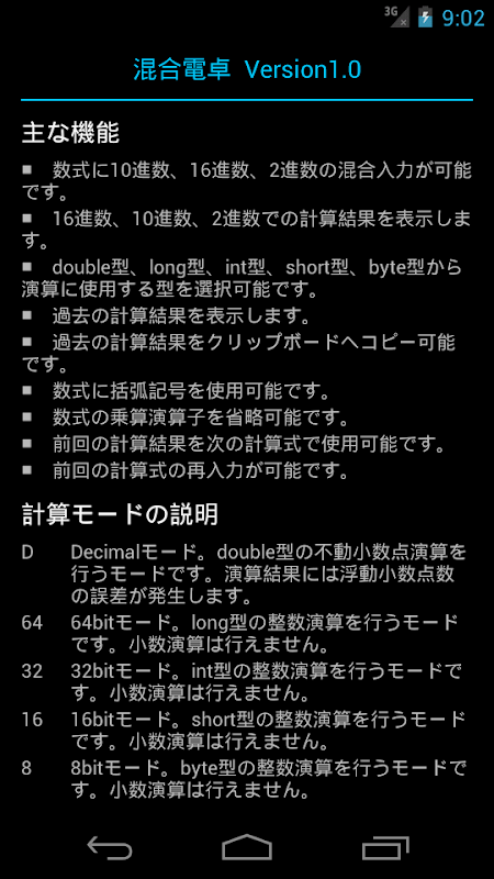 混合電卓Free - 2進数,10進数,16進数電卓 - 1.2