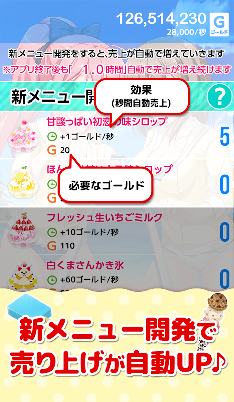 3.さらに売上を貯めて「新メニュー」のレベルを上げよう!