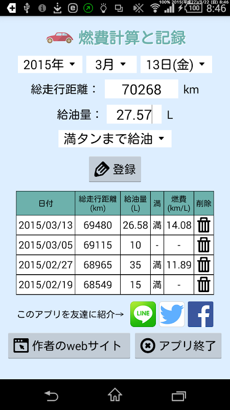 هنگامی که شما ثبت مسافت پیموده شده کل و مقدار نفت، و به طور خودکار محاسبه مصرف سوخت.