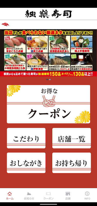 این برنامه رسمی برای سوشی تسمه نقاله و سوشی برتر است. ما به طور مرتب اطلاعات به روز شده و "کوپن های" سودمند را برای هر فروشگاه توزیع می کنیم.