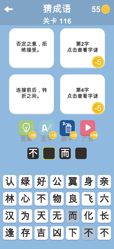- ** پر از دستاوردها و سرگرمی بی پایان: ** هر بار که با موفقیت یک اصطلاح را حدس می زنید، حس کاملی از موفقیت به دست خواهید آورد. ضمن لذت بردن از سرگرمی حل پازل، می توانید درک عمیق تری از فرهنگ چینی به دست آورید و انباشت زبان خود را غنی کنید.