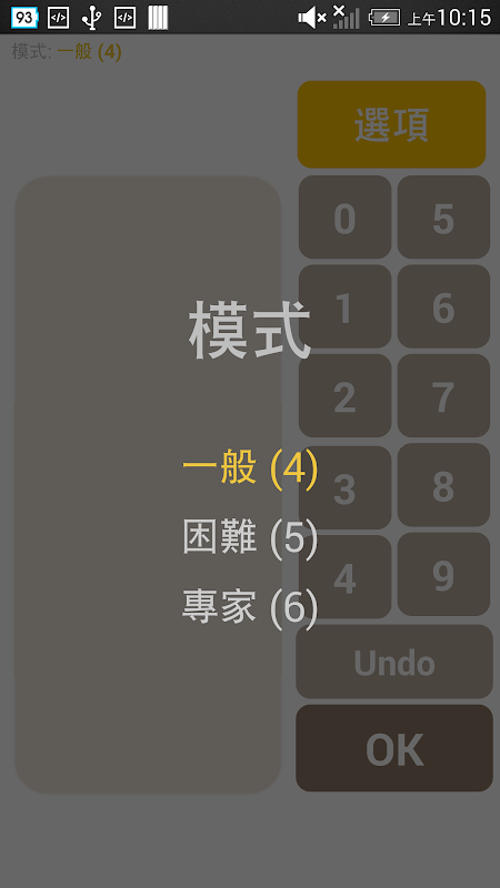 1.提供三種遊戲模式:一般(4個數字),困難(5個數字),專家(6個數字)
