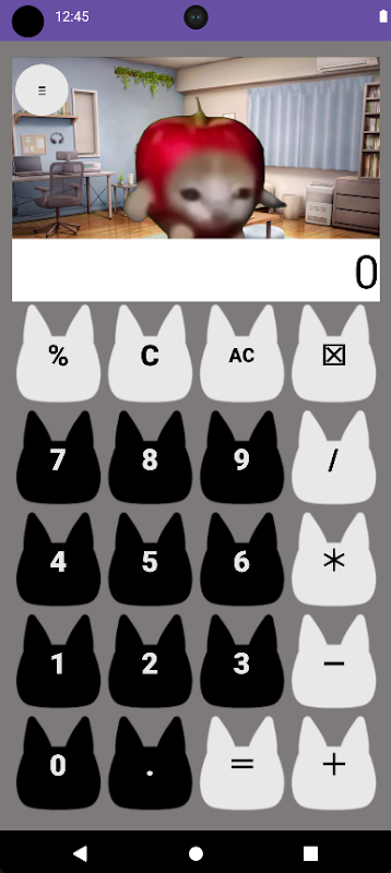 این برنامه یک ماشین حساب با مضمون میم گربه است.