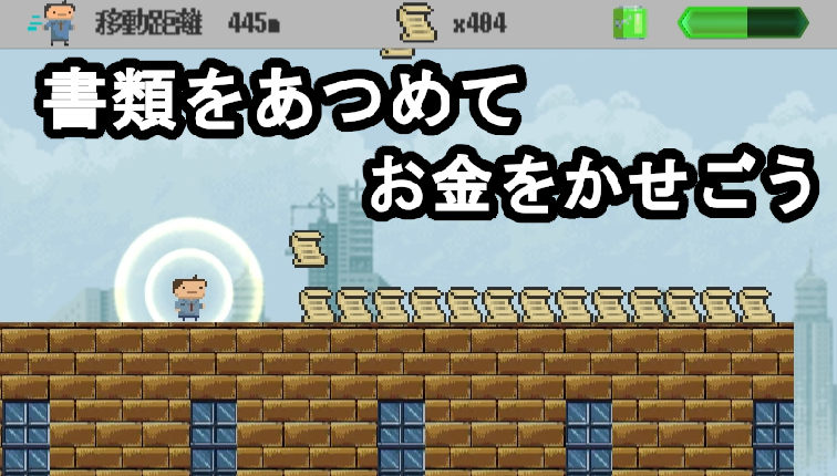 とある会社員?をタップでジャンプさせ、書類をたくさん集めよう。