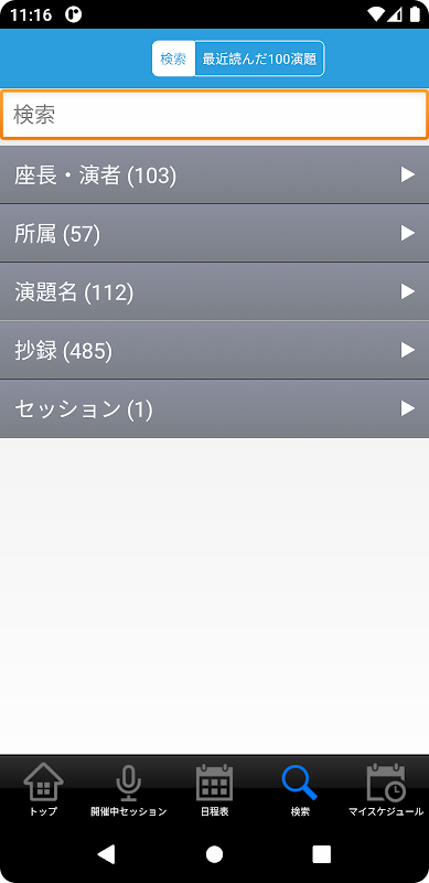 در طول جلسه، لیستی از جلسات اعلام شده در آن زمان نمایش داده می شود.