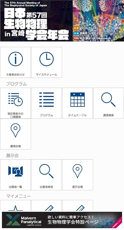 این برنامه رسمی مسابقات است که به شما امکان می دهد اطلاعات سخنرانی از 57مین نشست سالانه انجمن بیوفیزیکی ژاپن را مشاهده کنید.