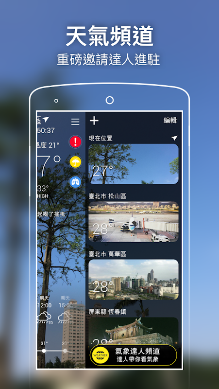 【自訂城市】 - 通勤族、旅人、在外遊子或是時常出差的商人,讓你隨時查看多縣市的天氣概況,不再侷限單一天氣。