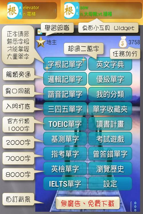 اطلاعات 英文記單字,字根,邏輯,諧音,字典/多益/英檢/基測/學測 APK