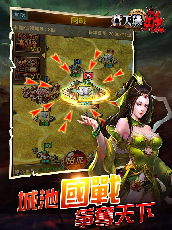 熱愛三國玩家不該錯過的正宗三國遊戲!想體會群雄割據、梟雄崛起的三國亂世嗎?還是想一展長才、力拔山河,並成為問鼎中原的一方霸主?你想要的,這裡全都有!《蒼天戰姬》保證是款真正值得嘗試的三國題材多人策略遊戲,絕對給您帶來前所未有的巨型策略三國手遊新震撼!
