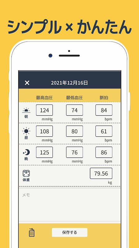 血圧記録ノート - 血圧と体重のシンプルな記録アプリ 1.0.64