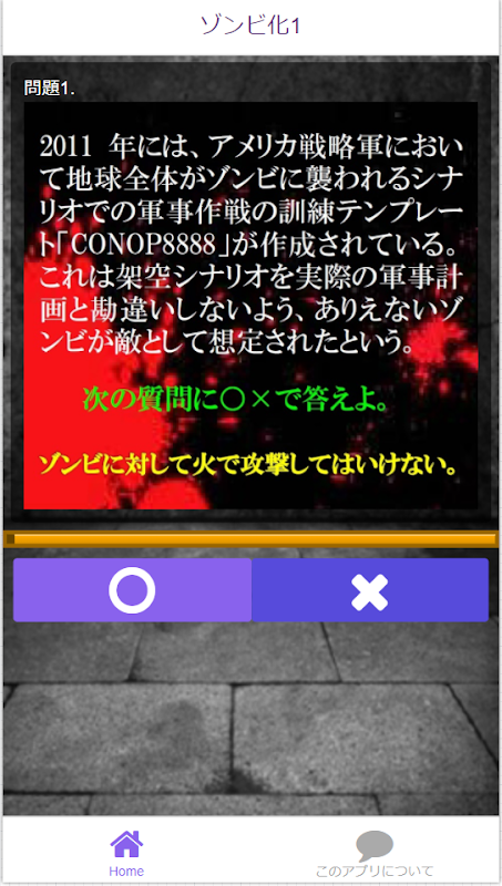 このアプリは、ゾンビから逃れるためのクイズアプリです。