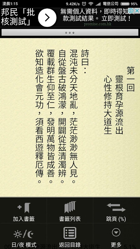 * 注意:改變字體大少,每頁字數會轉變,可能會使已加入書簽,出現(+/-)一頁誤差。