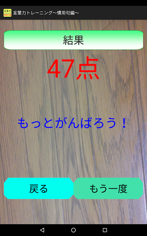 なお、本アプリはBGMが無いこと以外は、「言葉力トレーニング~慣用句編~」と全く同じ内容です。