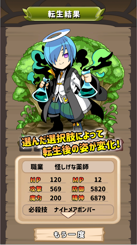 選択した答えによって姿が作成され、質問はプレイする度に変わります。