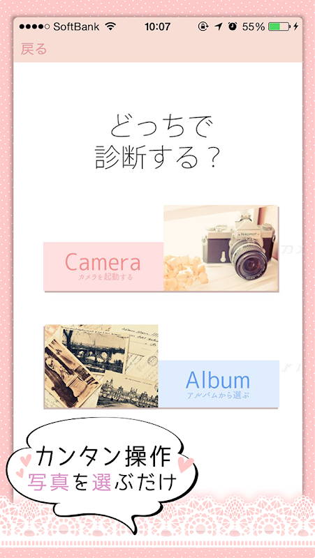 カメラかアルバムが起動するので、分析する写真を選んでください。