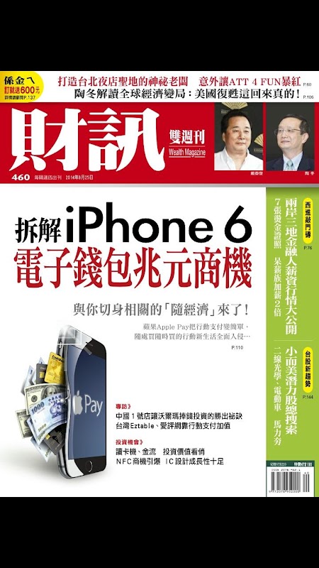 《財訊雙週刊》趨勢前瞻,投資領航: 每隔週四出刊,是國內最資深、專業的財經雜誌; 讓您隨時掌握政經大事,洞燭投資先機,幫助快速累積人生中的每一桶金。