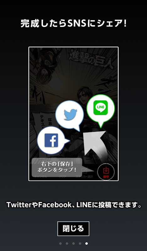 作成した画像は、そのままTwitterやFacebook、LINEに投稿できます。