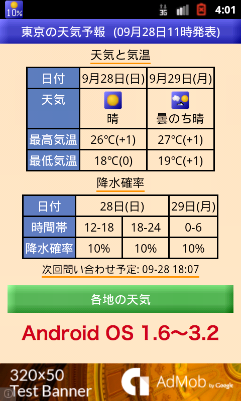 *アップデート後はお手数ですが一度画面を開いてください。リセットされたステータスバー表示、自動更新時刻が再設定されます。