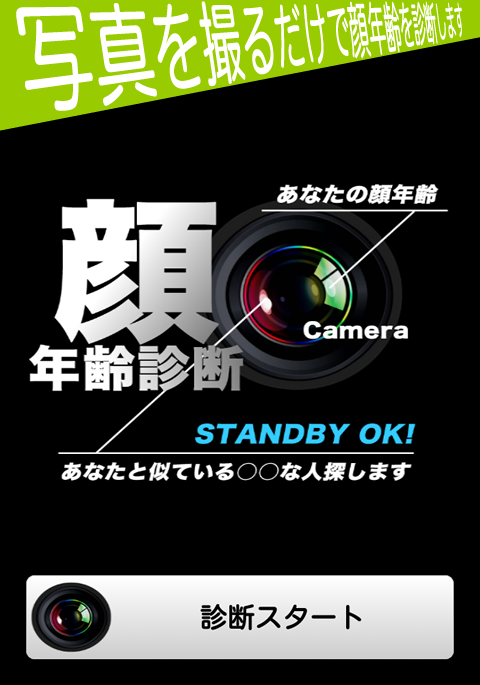 顔年齢診断カメラは、アプリ内蔵カメラで撮影した顔写真から顔年齢を診断します。診断結果には同系統の有名人/芸能人も表示。どんな診断結果でも笑って楽しんでください