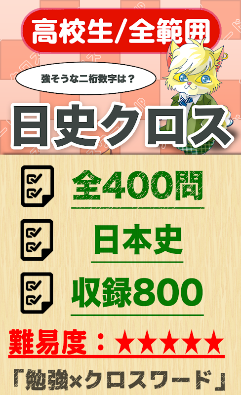 اطلاعات 高校生 日本史クロスワード 無料印刷OK! 勉強アプリ APK