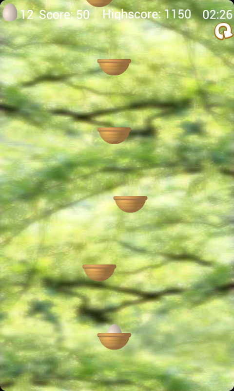 (1)找准时机在屏幕任何一个地方用手指点击一下,鸡蛋就会跳跃,让它掉在上面的篮子里,就会得分;没有掉到篮子里,便会损失一条生命,直到生命值全部耗完,游戏结束。