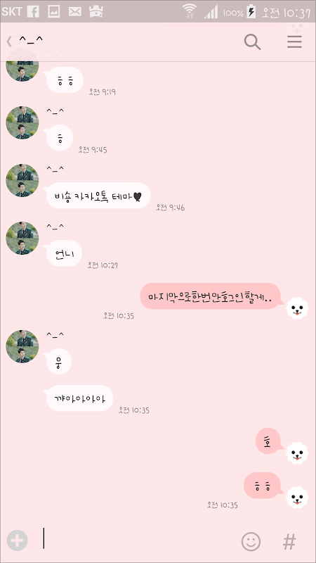 귀여운 강아지 비숑 분홍색 카카오톡 테마입니다!