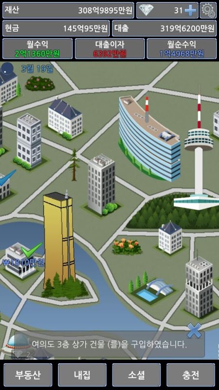 This is a real estate game in Seoul. Live the life of a gold spoon that inherited a building. You are now a building owner.