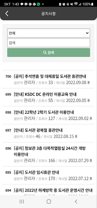 از طریق برنامه ، می توانید از خدمات مشابه ارائه شده توسط کتابخانه مانند راهنمای کاربر ، جستجوی یکپارچه ، درخواست استعلام کتاب و درخواست به تعویق انداختن ، و رزرو در هر زمان و هر مکان استفاده کنید.