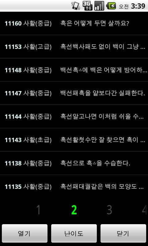 사활문제 화면은 손가락으로 문제를 풀 수 있는 1/4 바둑판 크기로 하였습니다.