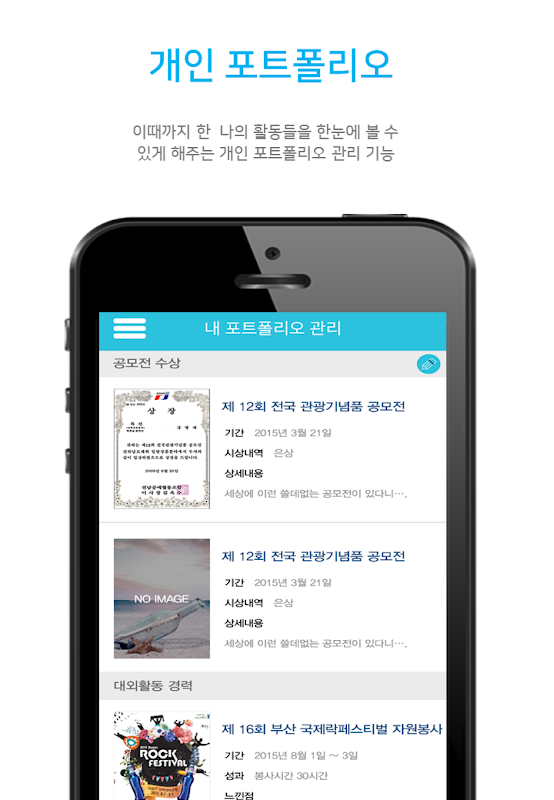 공모전, 대외활동을 하긴 했는데 말이야... 이걸 어떻게 다 기억하지...? 그럴 땐 고민고민 하지말구 내 포트폴리오를 클릭! 포트폴리오에 공모전 수상사진이나 대외활동 증명서 등을 등록하고 기간이나 활동상세내역 등을 함께 기록해두면 필요할 때 언제든 열람해 볼 수 있답니다~