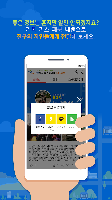 - 카카오톡, 카카오스토리, 페이스북, 네이버 밴드 공유 기능