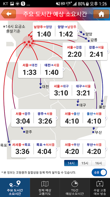 5. 미래 예상 소요시간, 미래 교통지도, 주말 교통예보방송 등 교통예보 정보 제공