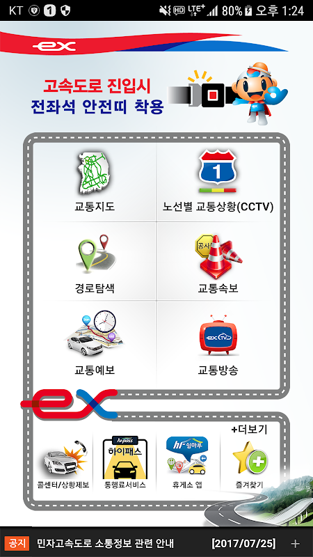 고속도로 노선별 소통상황과 CCTV 정보를 제공하며,