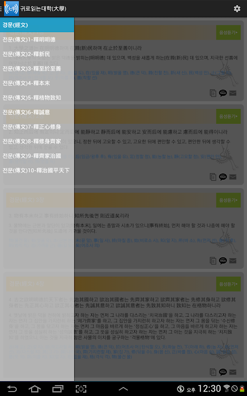 - سنتی تحقیقات و انتشار فرهنگ در "گوش خواندن کلاسیک شرقی" برنامه های خرید (قطعات ادبی 論語، منسیوس 孟子، دانشگاه 大學، اعتدال 中庸) یکی از سری قطعات ادبی است.
