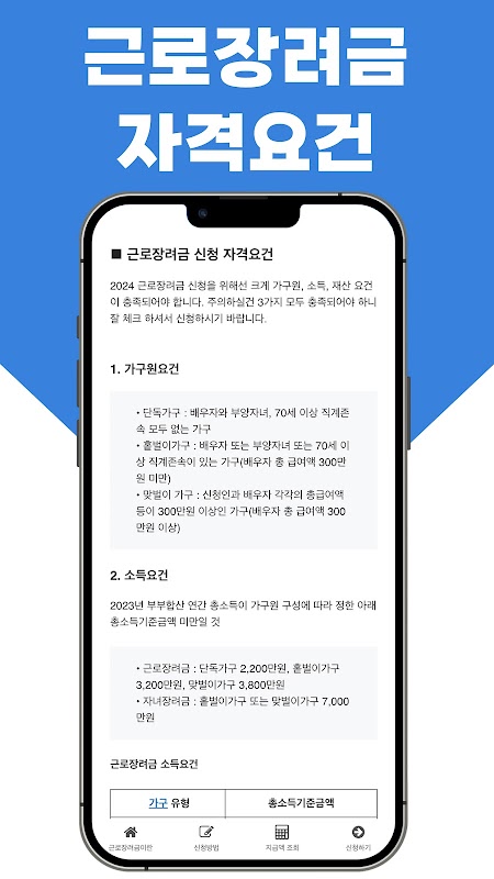اطلاعات 근로장려금 알림서비스 - 자격요건, 신청방법, 지급액 APK