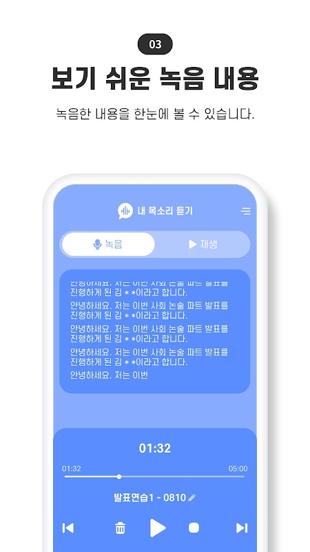 내목소리듣기 – 발표녹음, 음성녹음, 녹음기 1.03