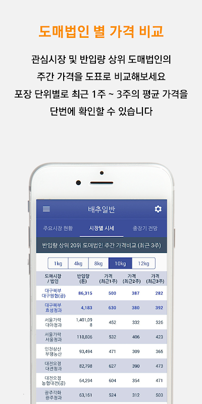 - 관심시장 도매법인을 최상단에 나오게 하여 비교가 쉽도록 함.