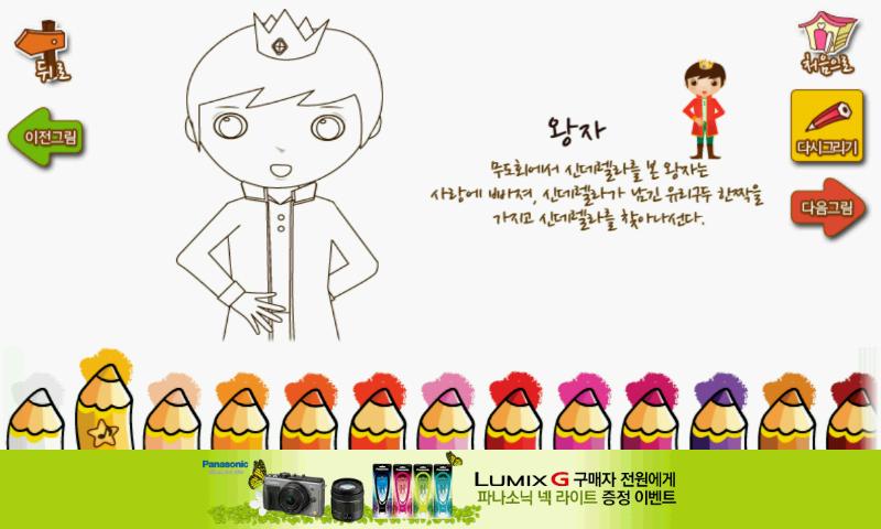 동화의 이미지를 가지고 퍼즐게임과 색칠놀이를 할수 도 있습니다.