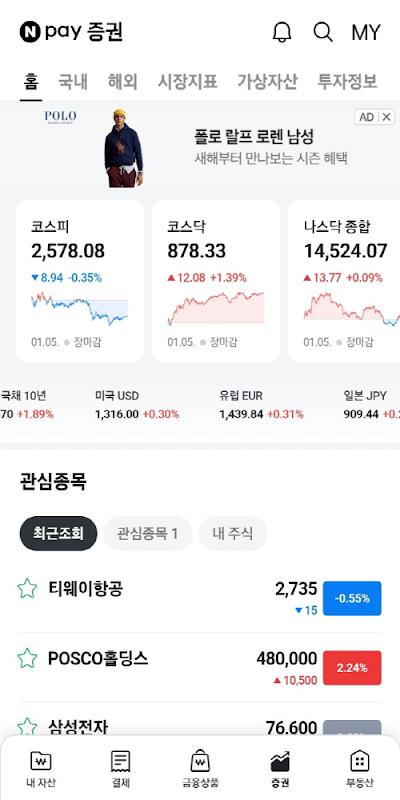 یک سرویس میانبر ارائه شده است تا بتوانید از صفحه اصلی Naver Securities (Npay Securities) استفاده کنید.