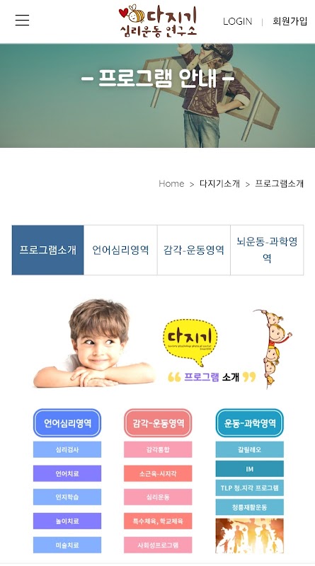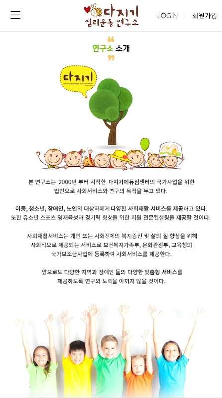 اپلیکیشنی که مکانی را معرفی می کند که کارشناسان حوزه های مختلف مرکز توسعه واقع در اینچئون با صمیمیت و عشق به رویاها و امیدهای کودکان از طریق ارزیابی، درمان و آموزش کودکان با کودکان ملاقات می کنند.