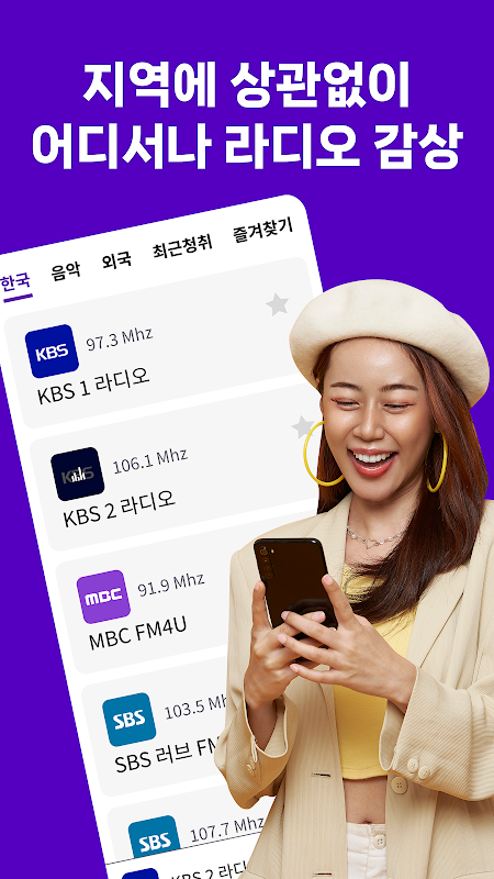 ☞ به تمام کانال های رادیویی داخلی از جمله KBS، MBC، SBS، TBS، CBS، FEBC، EBS و غیره گوش دهید.