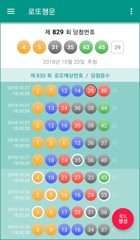 로또행운 : 로또당첨 예상번호 조합 생성 1.3.6