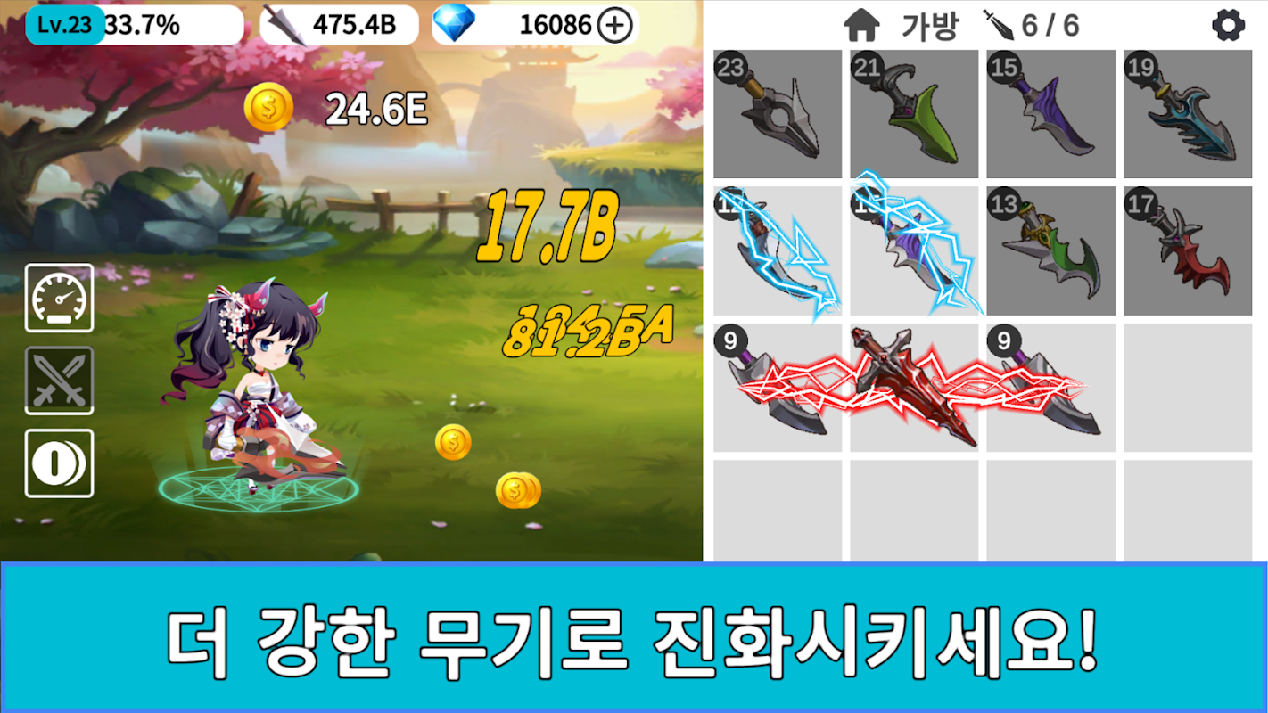 같은 검을 합체하면 더 강한 검으로 진화합니다