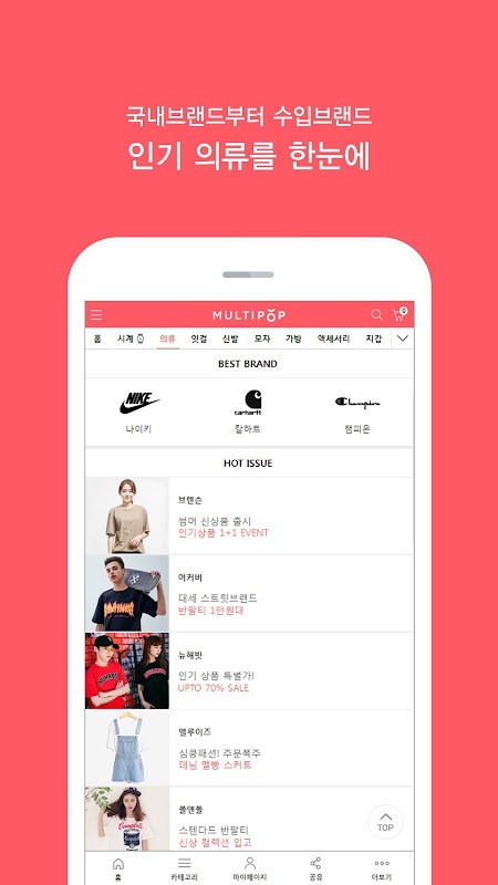 멀티팝은 캐쥬얼/스포티/트렌드 의류 및 신발, 액세서리, 모자 등 패션카테고리를 주력으로 하는