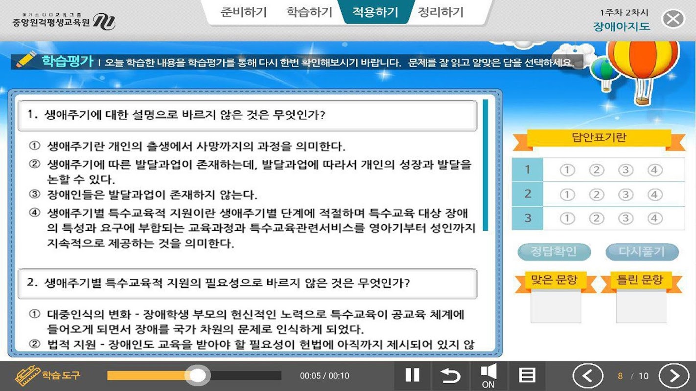 ※ 본 애플리케이션에서는 강의 수강(진도체크)만 가능하며 시험/과제/토론 제출이 불가하므로 PC를 이용해 주시기 바랍니다.